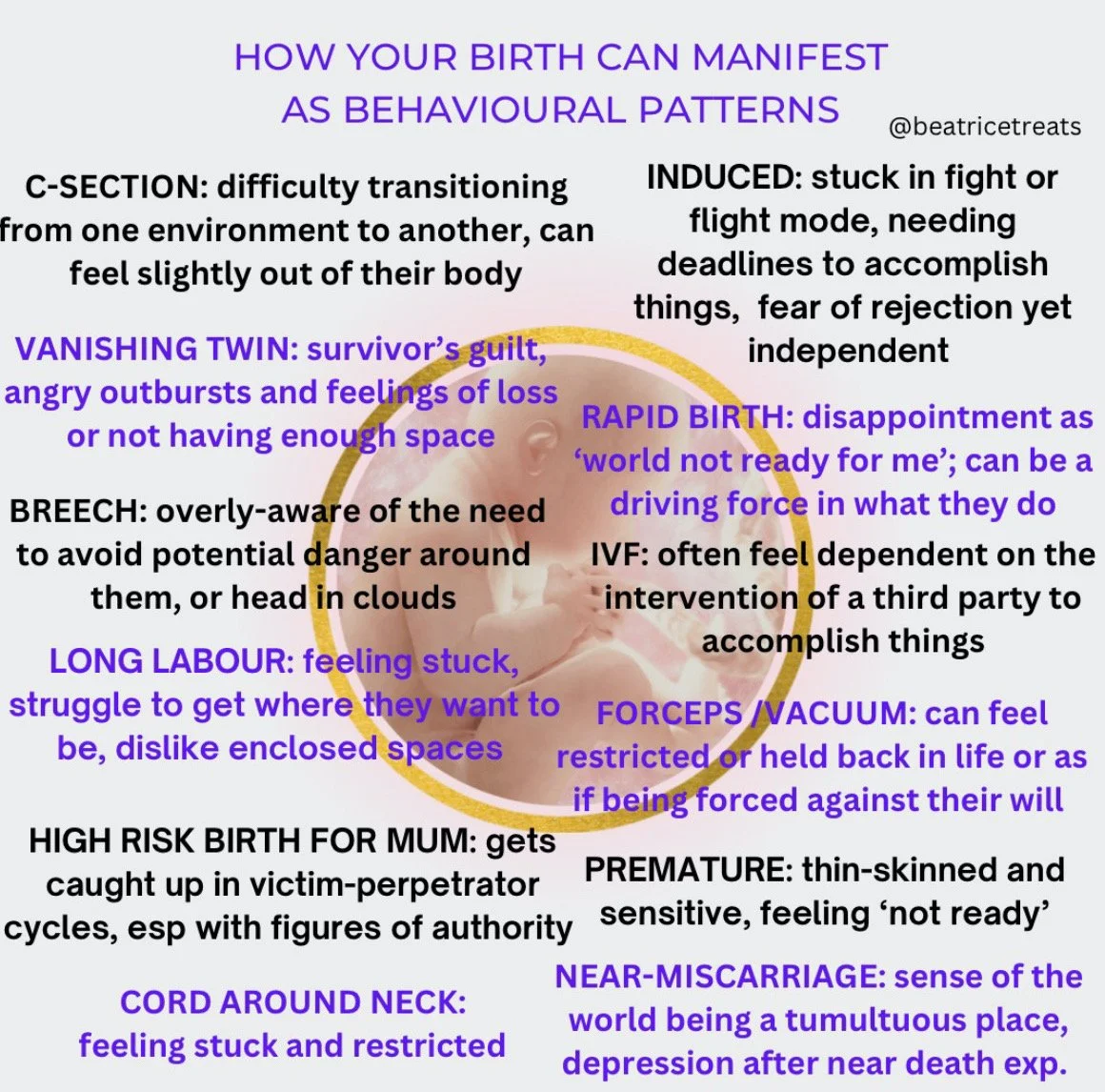 We may gather more layers as we go through life but birth and pre-birth tend to lay the foundations upon which our deeply ingrained patterns are unconsciously repeated. I was induced and premature and ended up with so much adrenaline in my system that I walked on my toes, never crawled, ready to go into flight mode but needing an impending deadline to get anything done. I have several clients whose mothers nearly died during their births who often find themselves stuck in victim-perpetrator cycles and are often embroiled in legal action in their family and work lives.